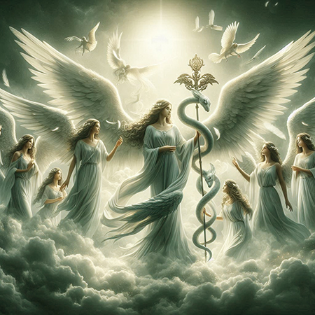 In tale contesto mitologico i messaggeri divini erano rappresentati come con le ali analogamente agli angeli.