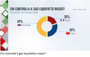 Anche alla fonte, il gas russo viene liquefatto dalla società Yamal, i cui azionisti sono perlopiù russi, ma anche francesi e cinesi.
